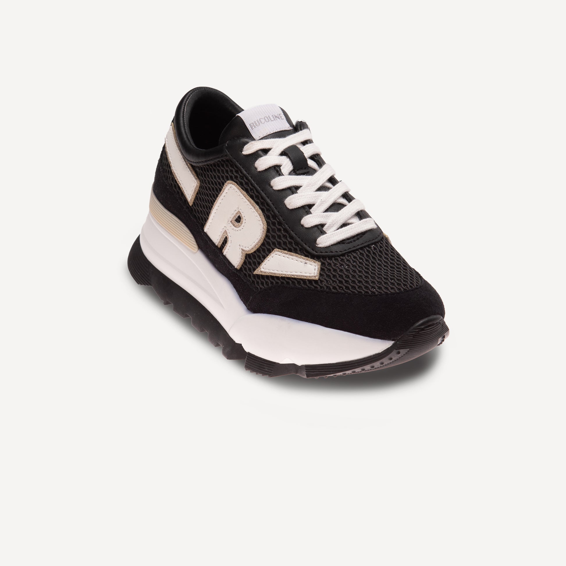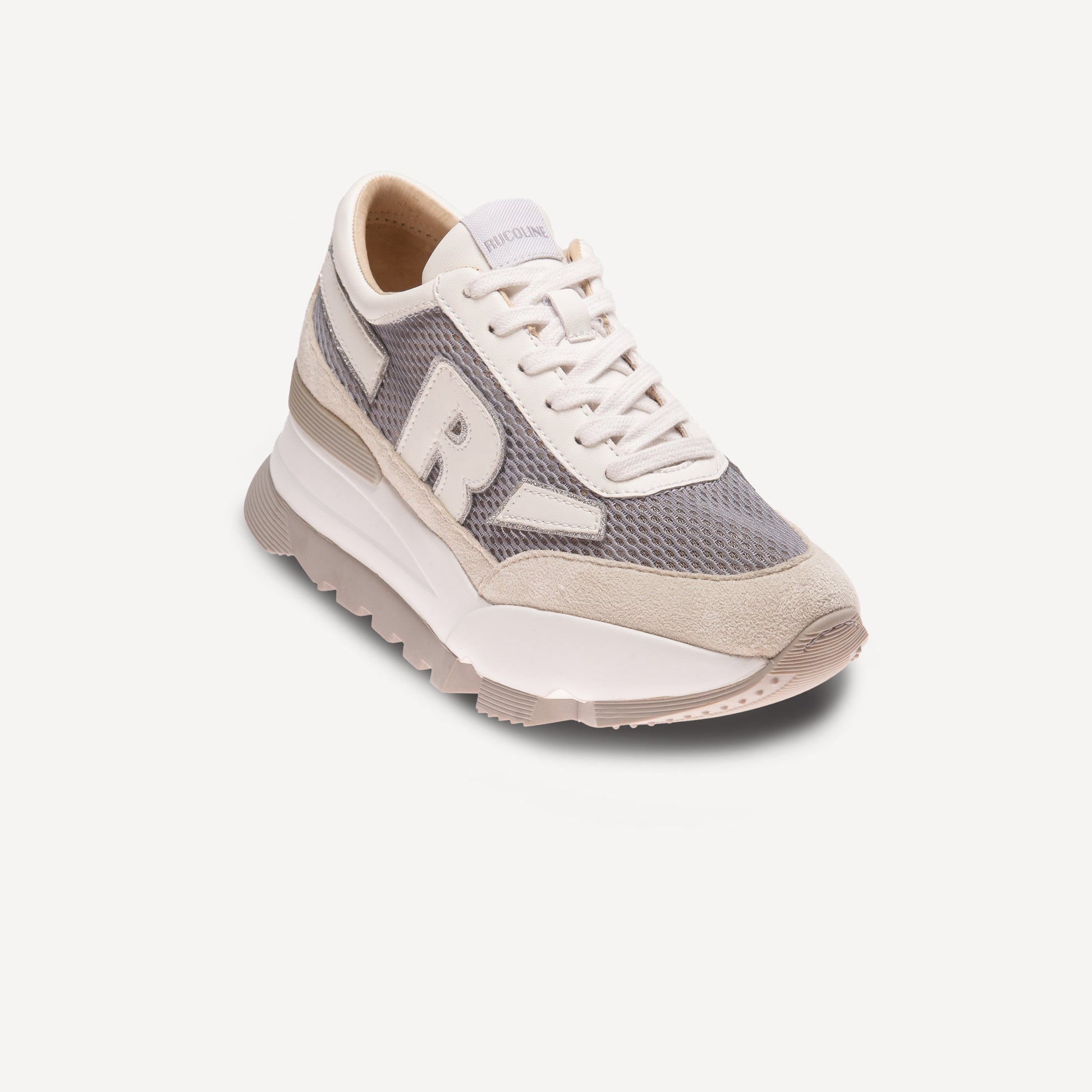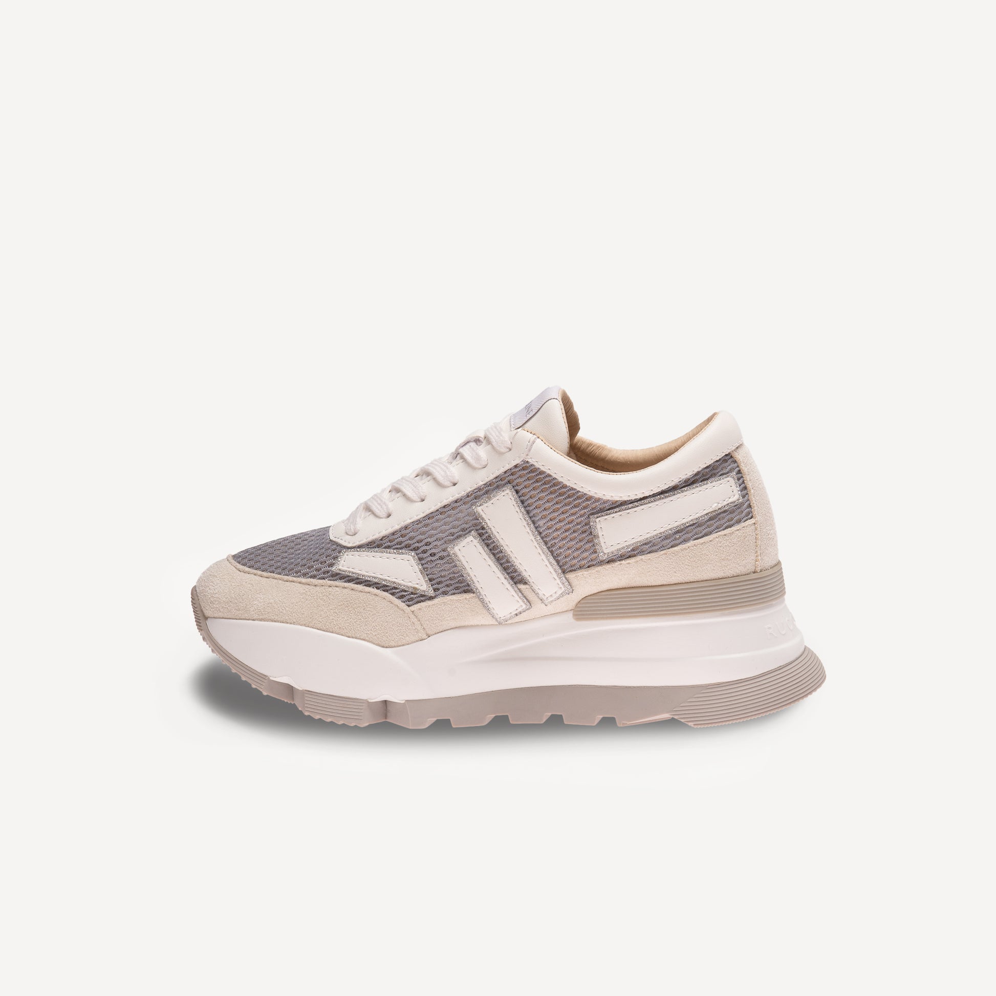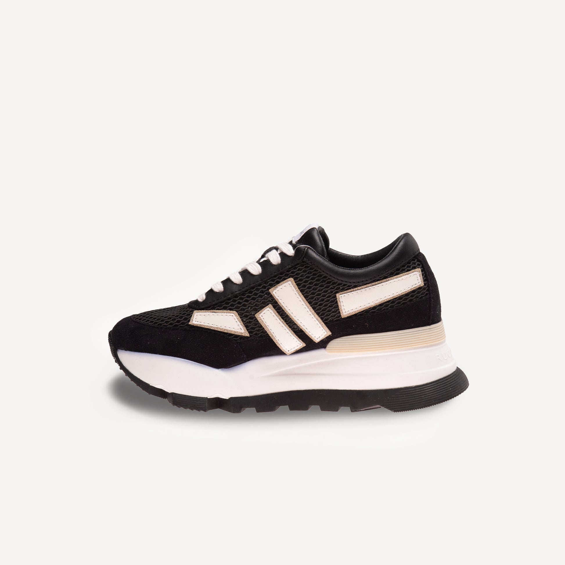 mesh fabric, suede inserts and