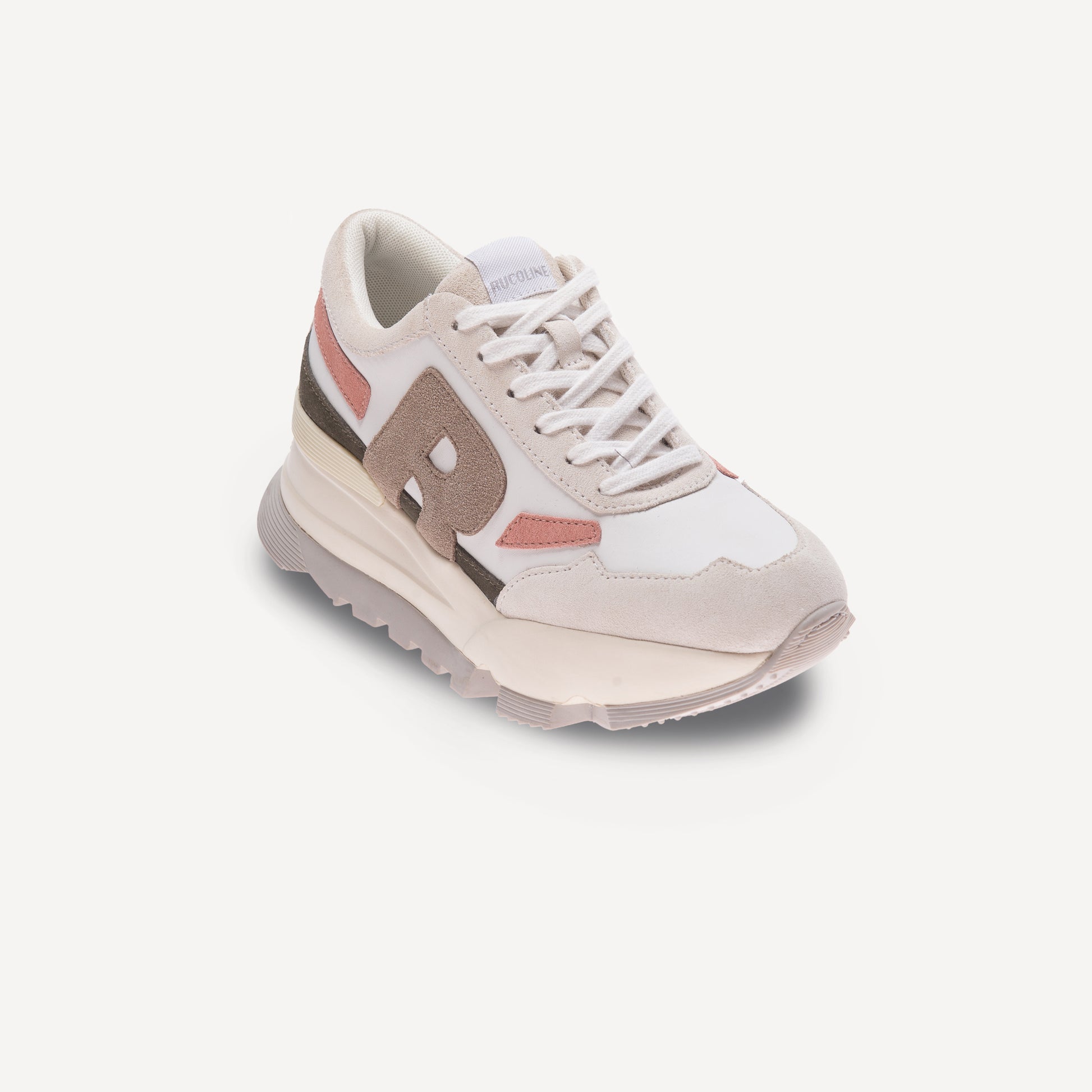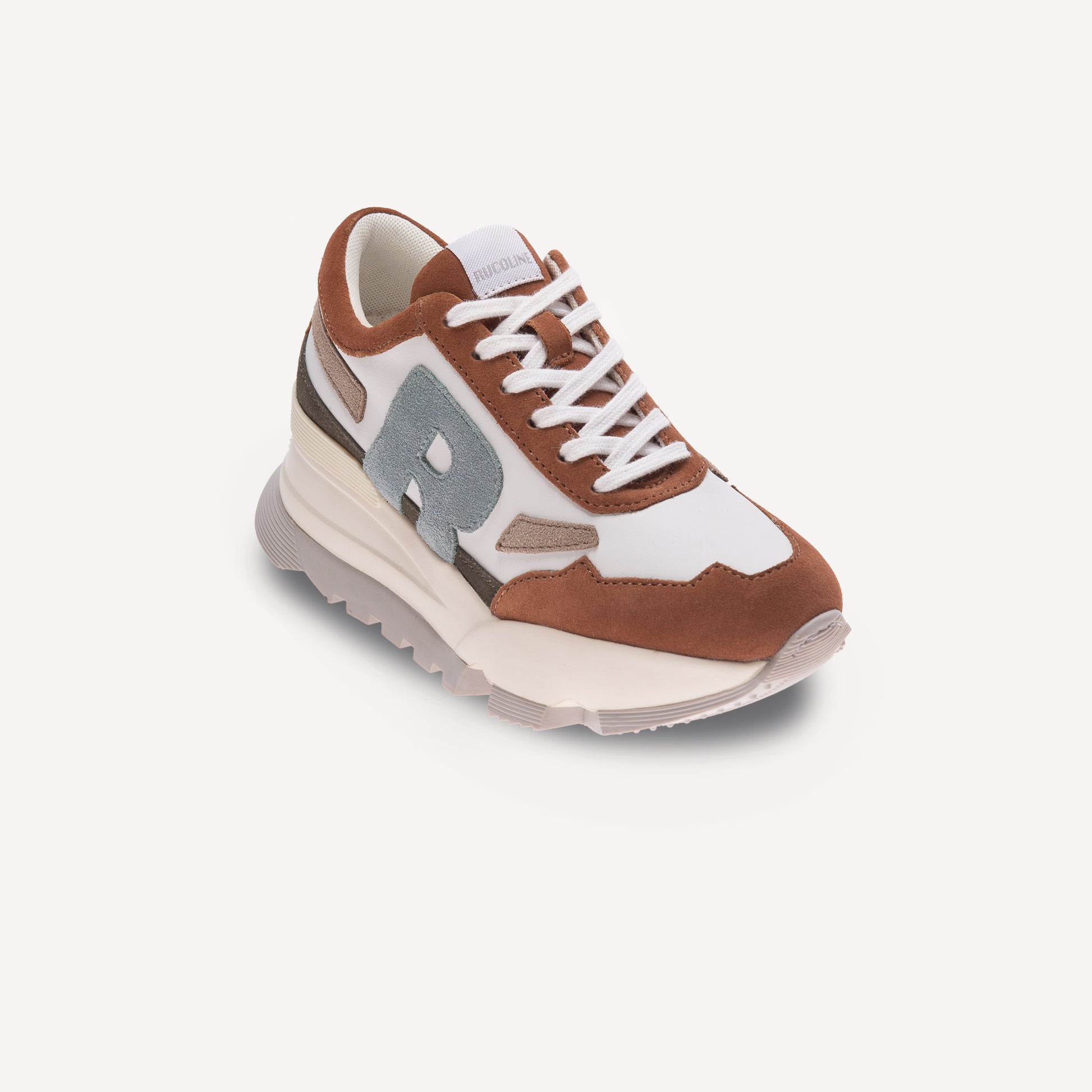 LACE-UP SNEAKERS WITH SYNTHETIC FABRIC UPPER WITH MULTICOLOR SUEDE LEATHER PATCHES AND LOGO, EVA SOLE, HEIGHT 55MM
