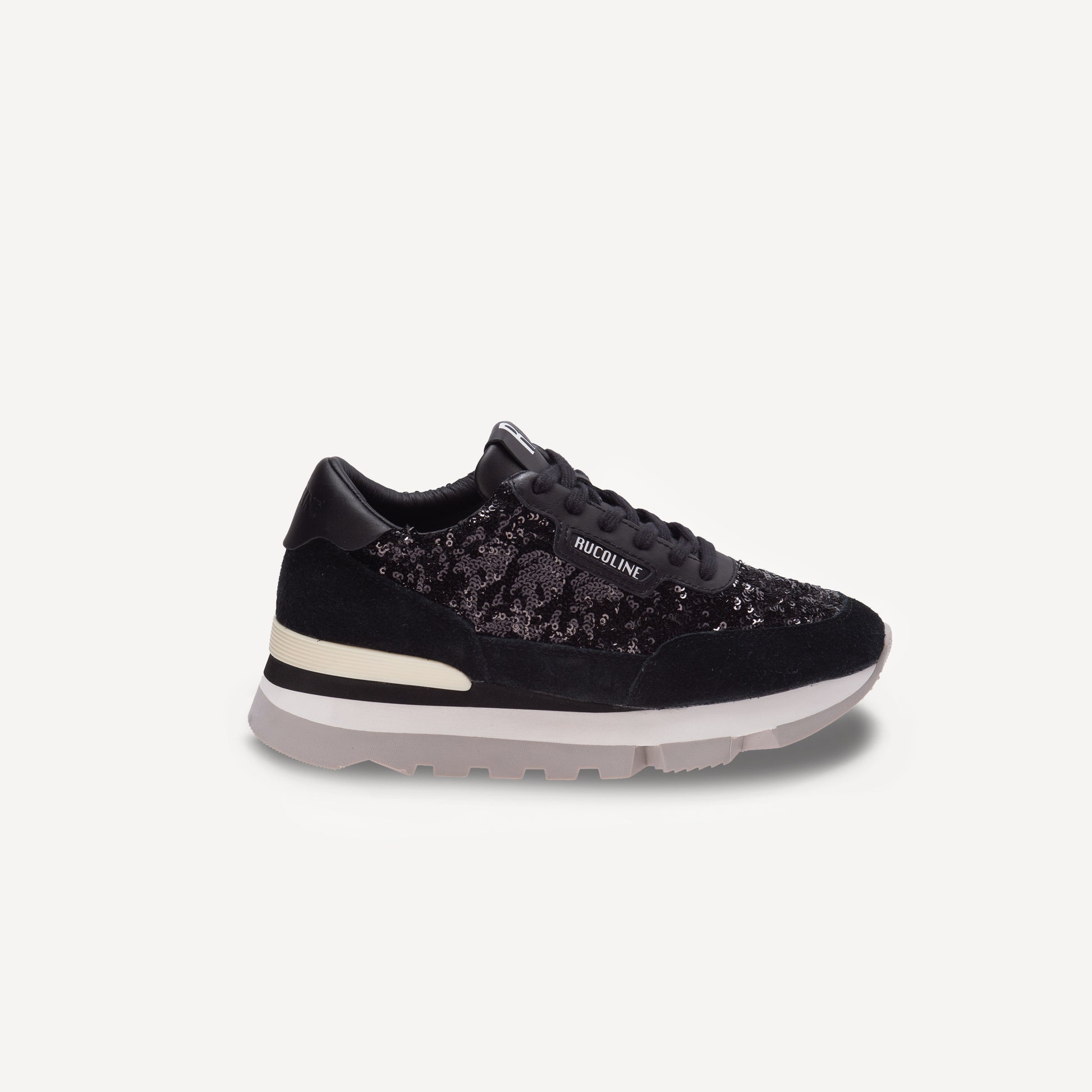 LACE-UP SNEAKERS WITH SEQUINED FABRIC UPPER AND SUEDE LEATHER INSERTS, EVA SOLE, HEIGHT 55MM