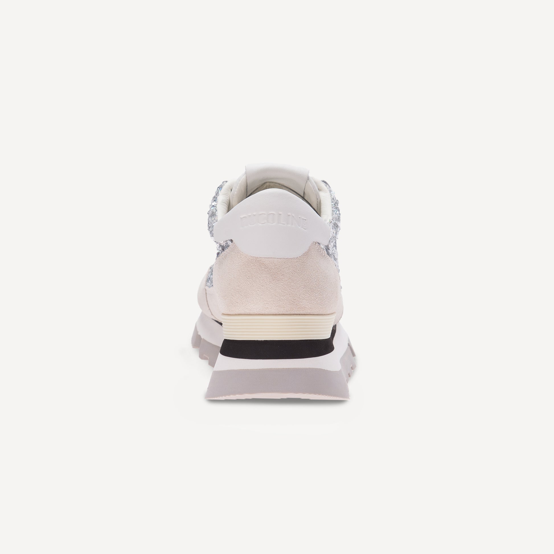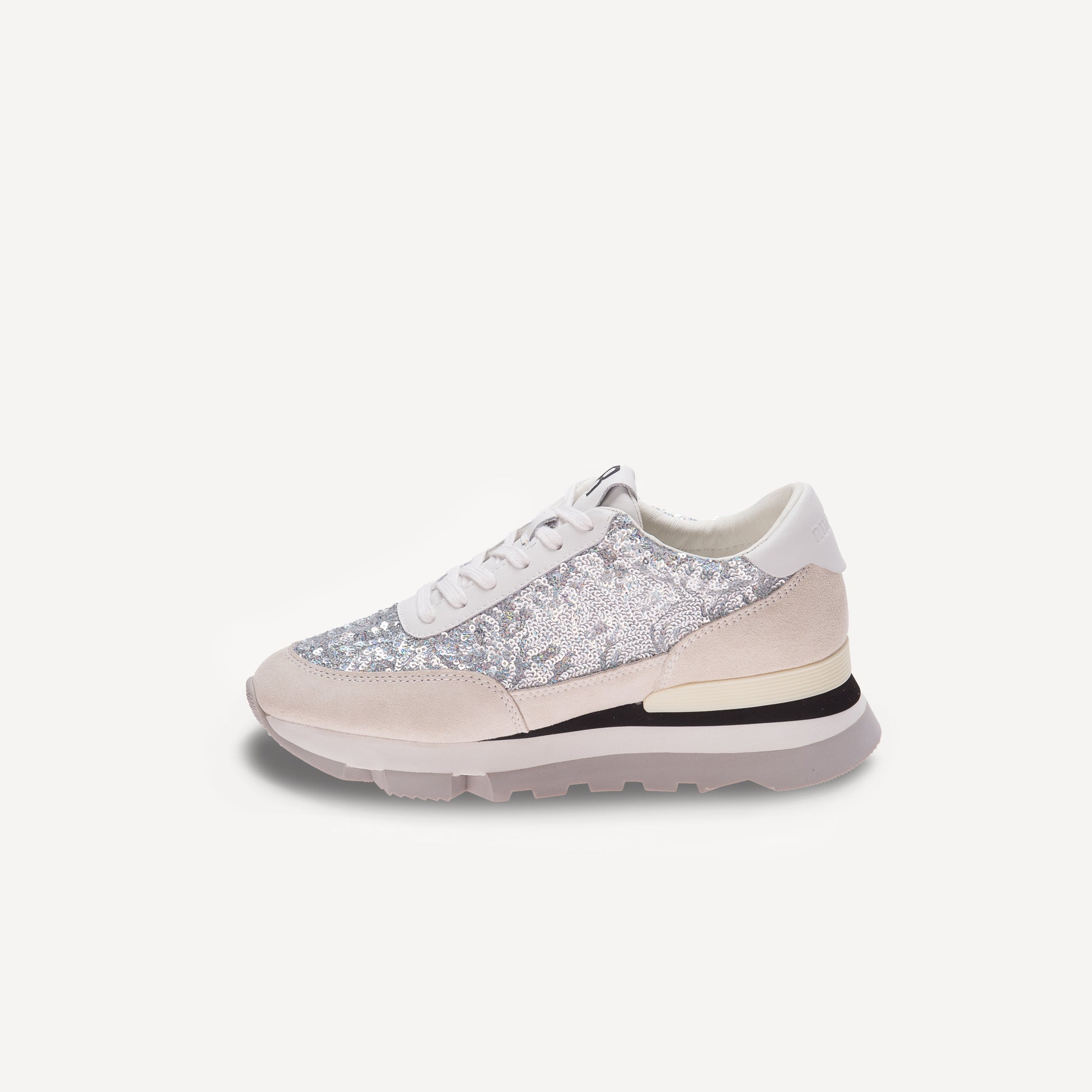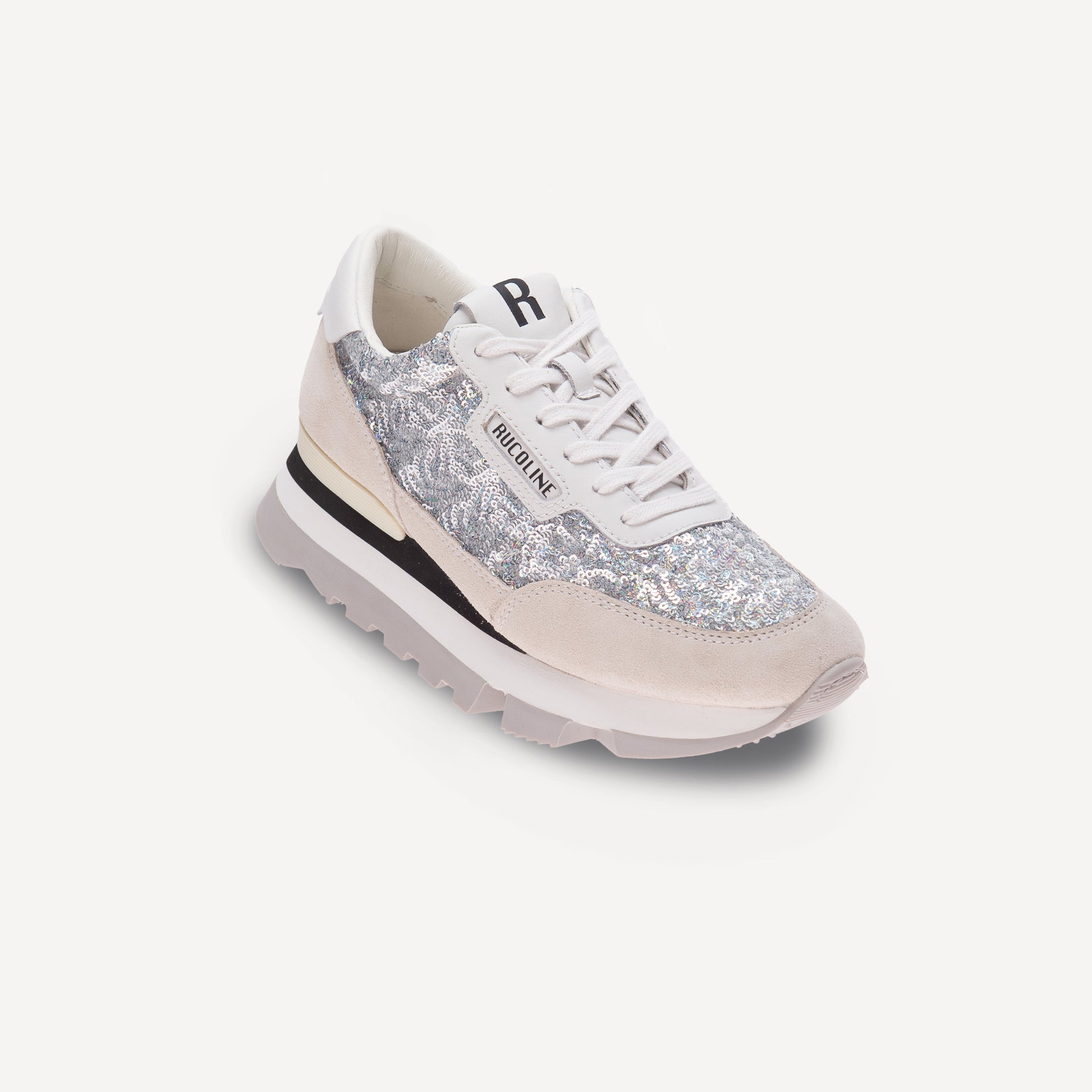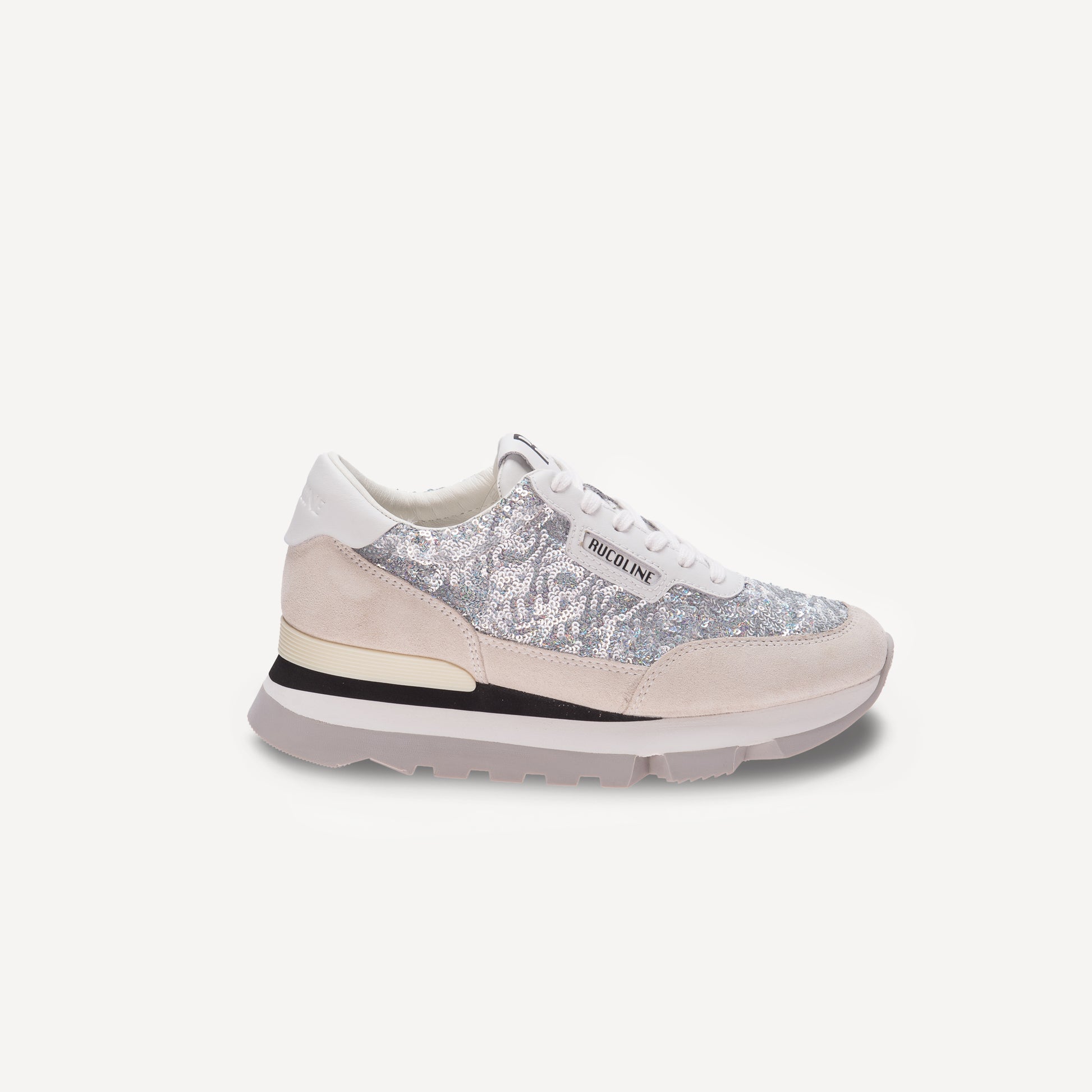 LACE-UP SNEAKERS WITH SEQUINED FABRIC UPPER AND SUEDE LEATHER INSERTS, EVA SOLE, HEIGHT 55MM