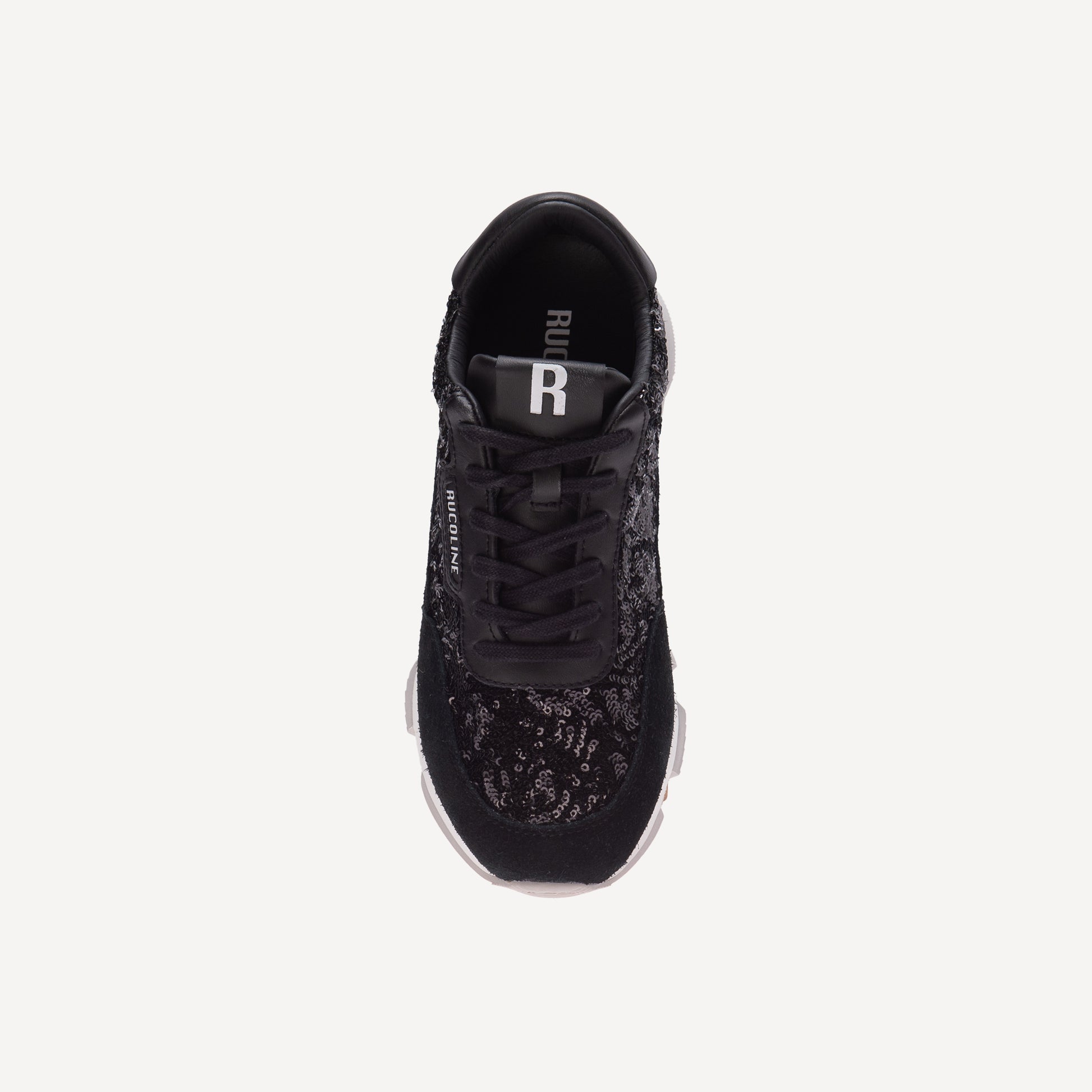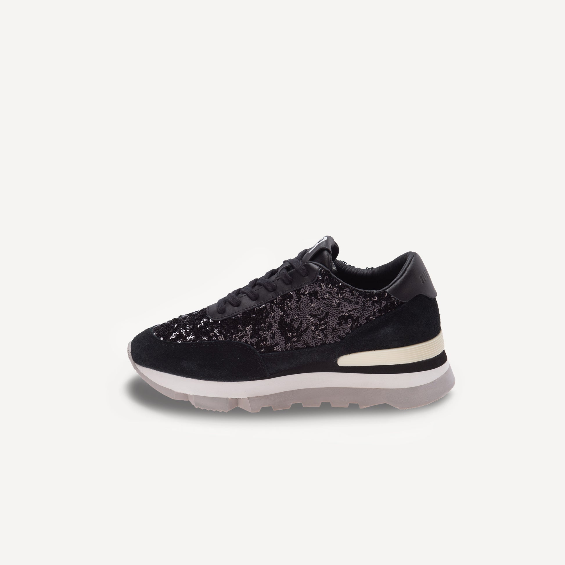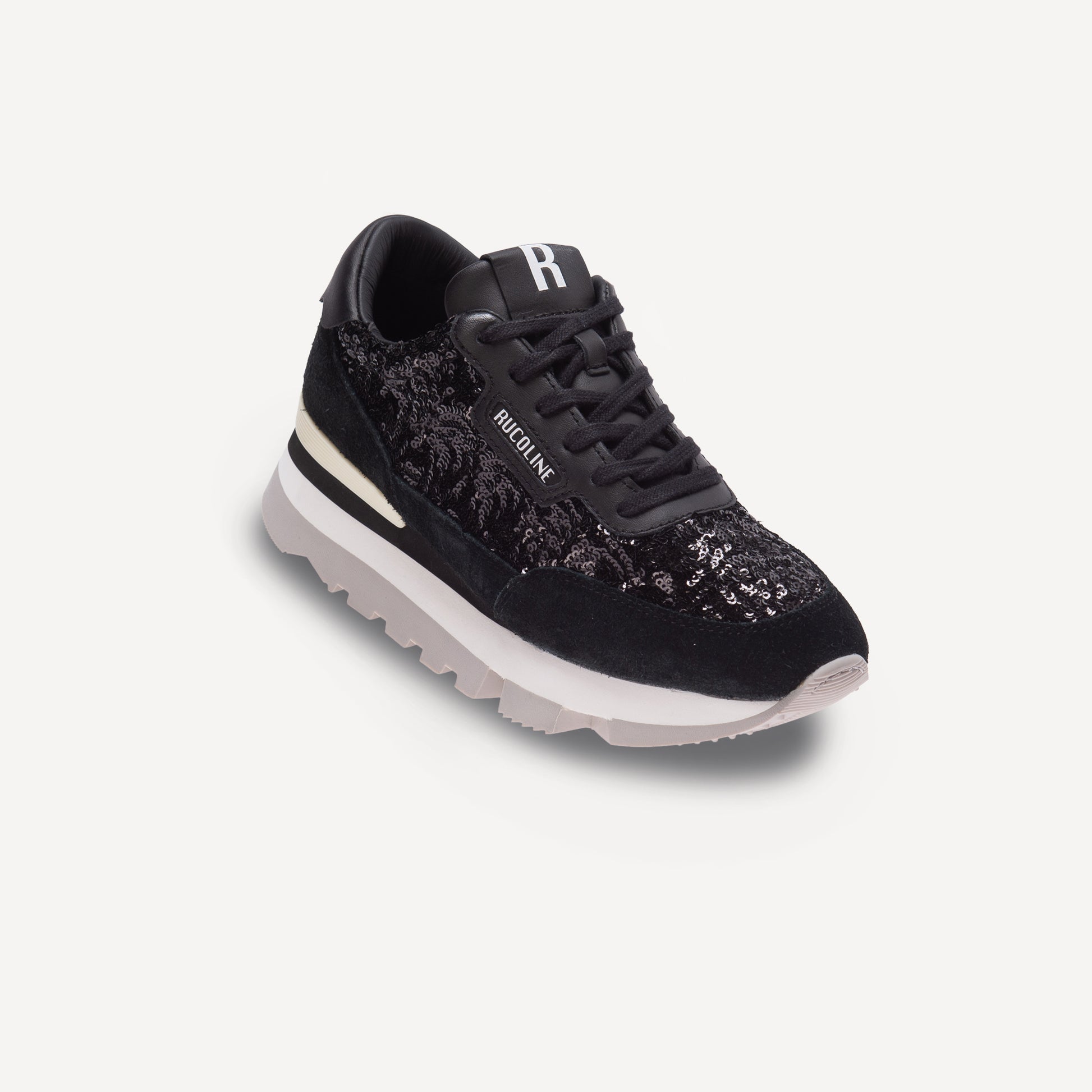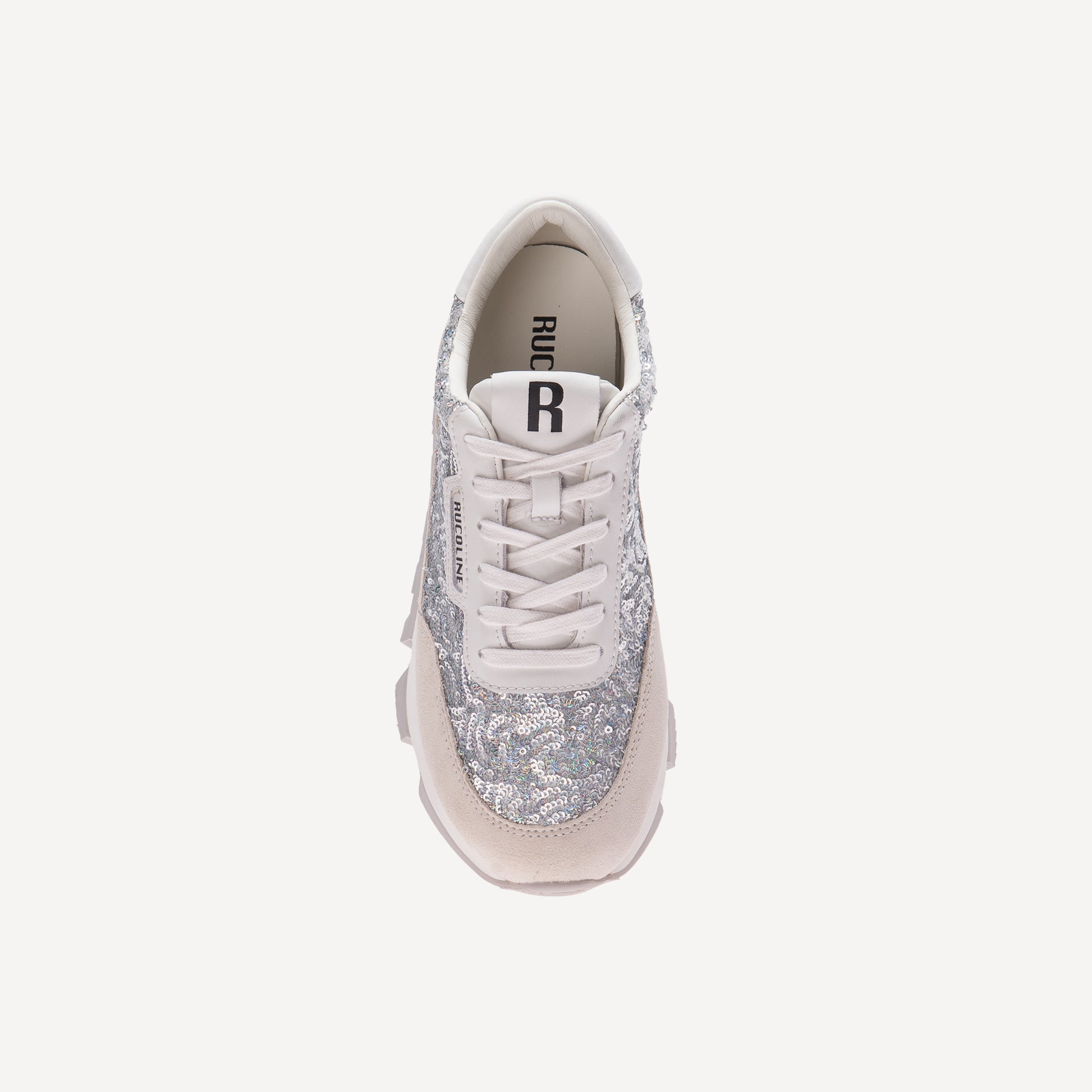 LACE-UP SNEAKERS WITH SEQUINED FABRIC UPPER AND SUEDE LEATHER INSERTS, EVA SOLE, HEIGHT 55MM