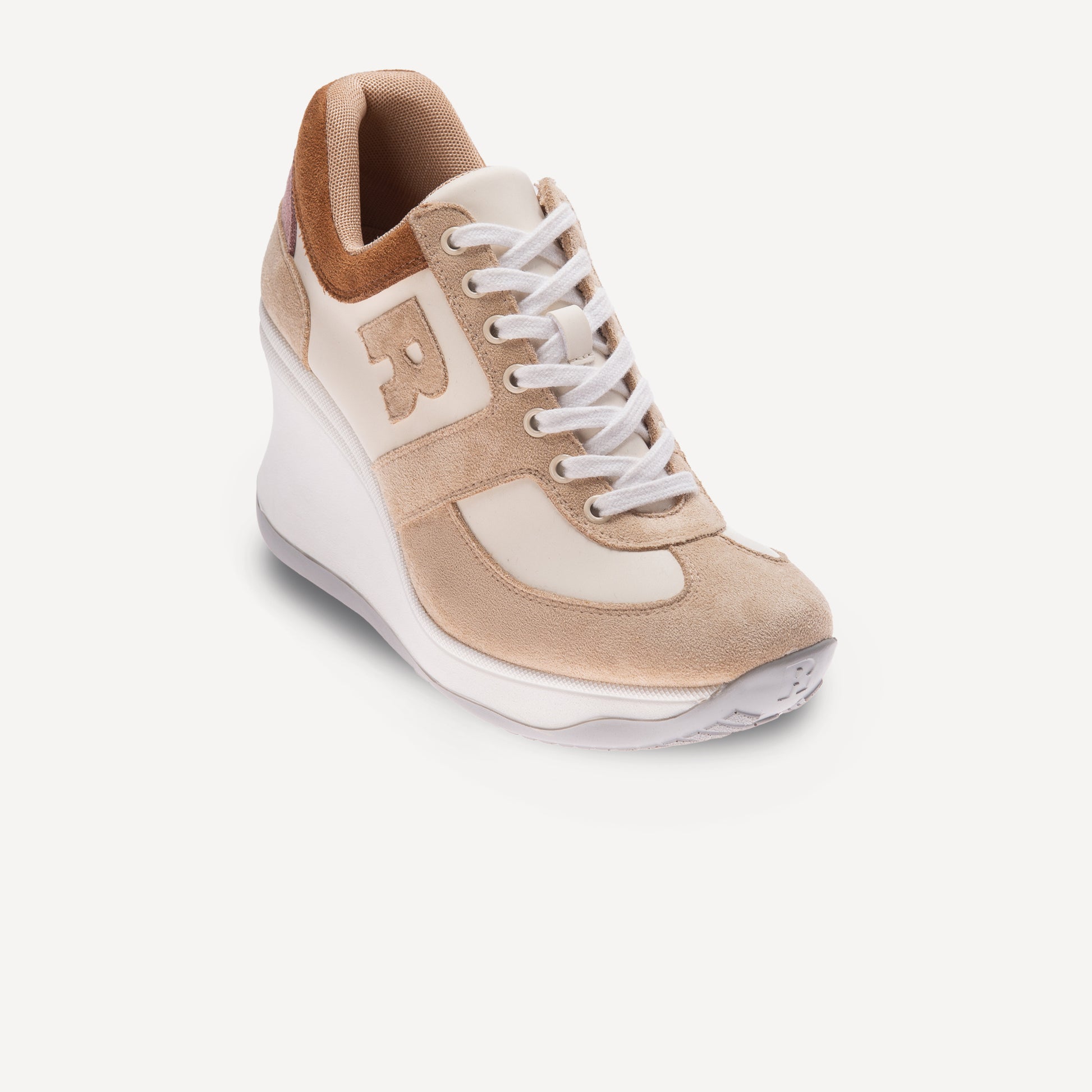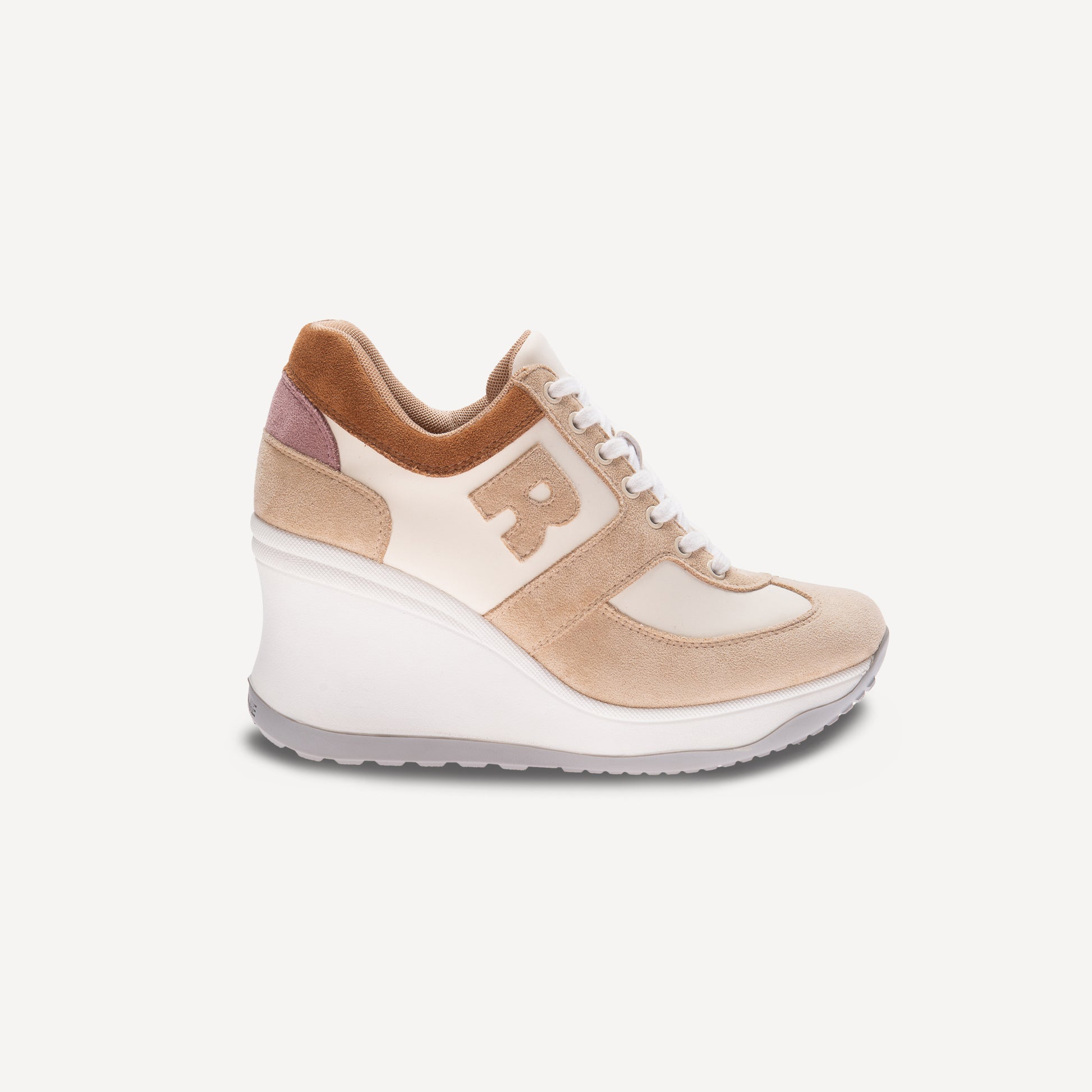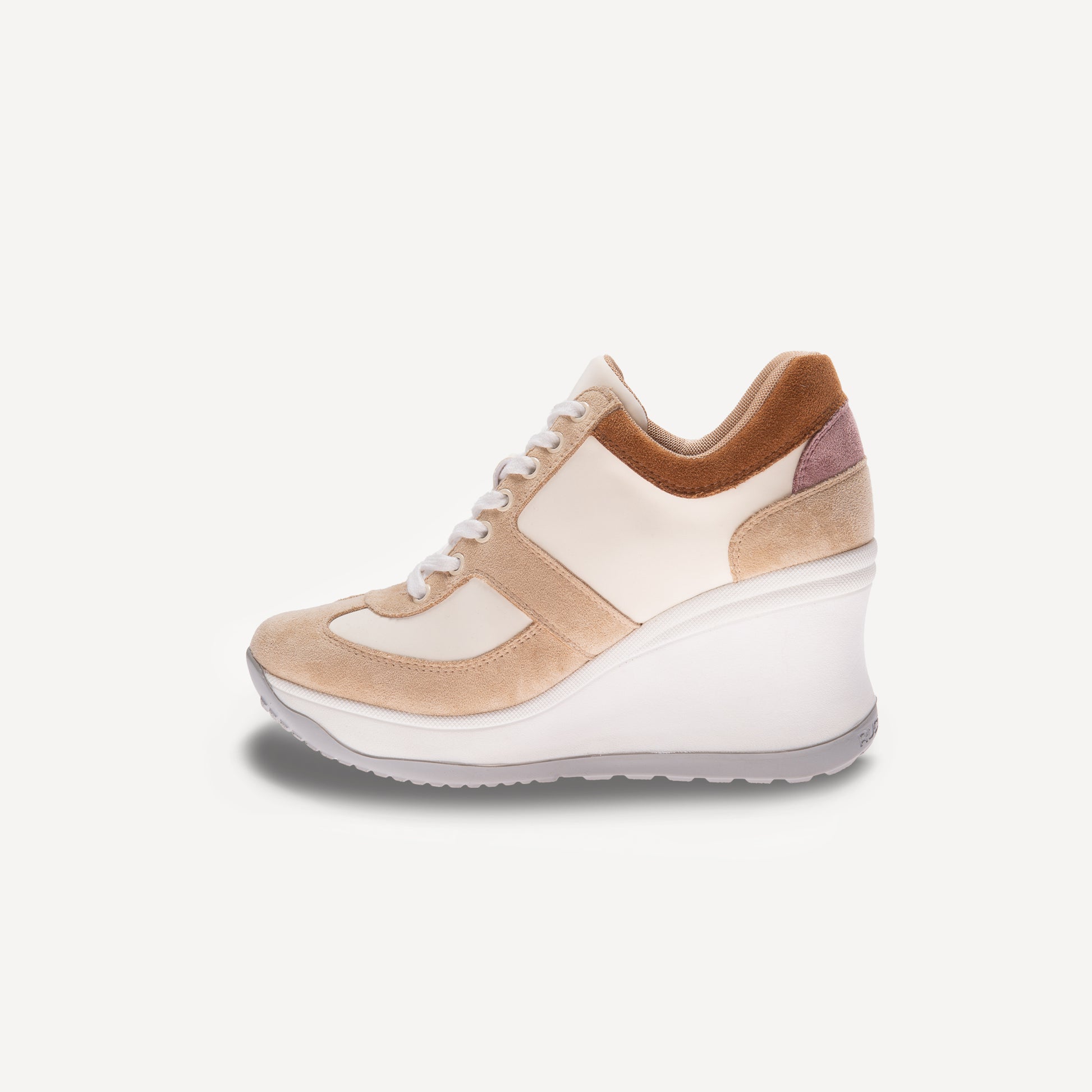 LACE-UP SNEAKERS WITH SYNTHETIC FABRIC UPPER WITH MULTICOLOR SUEDE LEATHER TRIMS AND LOGO, POLYURETHANE SOLE, HEIGHT 90MM