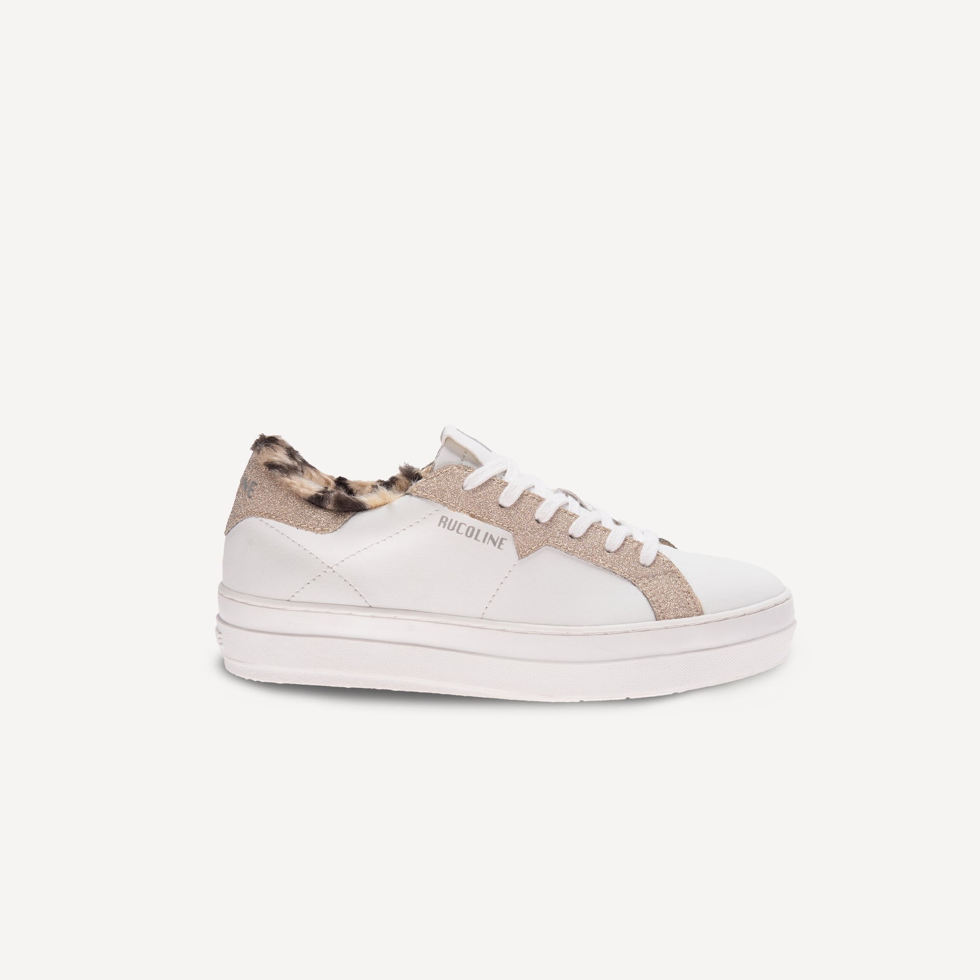 LACE-UP SNEAKERS WITH SYNTHETIC UPPER WITH SOME GLITTERED FABRIC INSERTS, SYNTHETIC FUR LINING, RUBBER BOX SOLE, HEIGHT 40MM