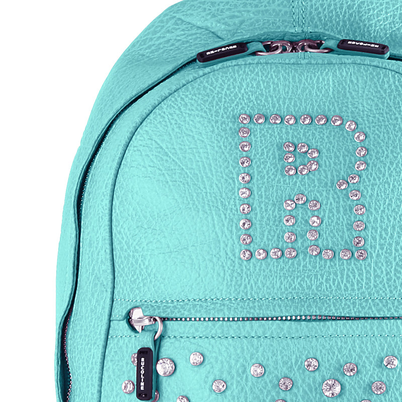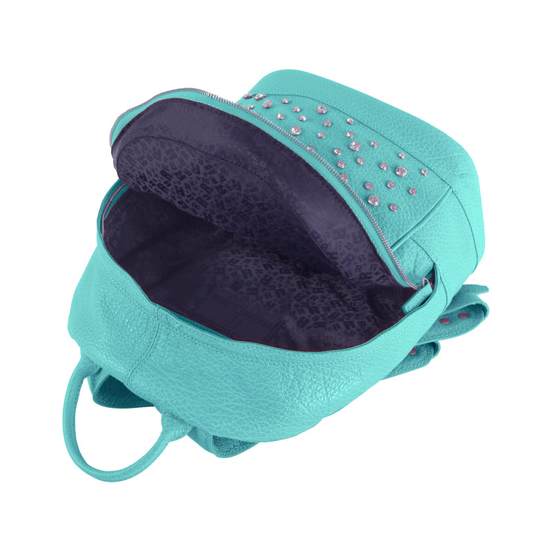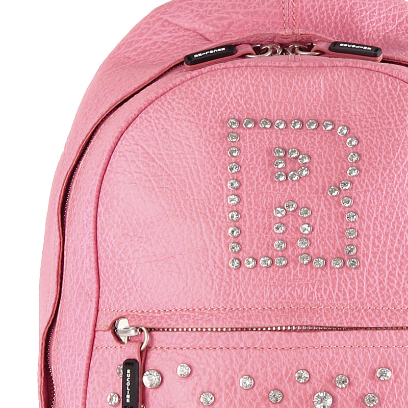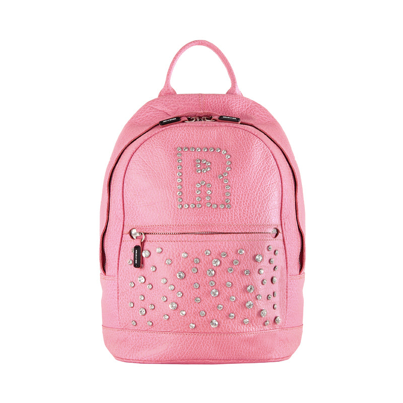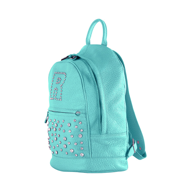 Women's leather backpack with rhinestones