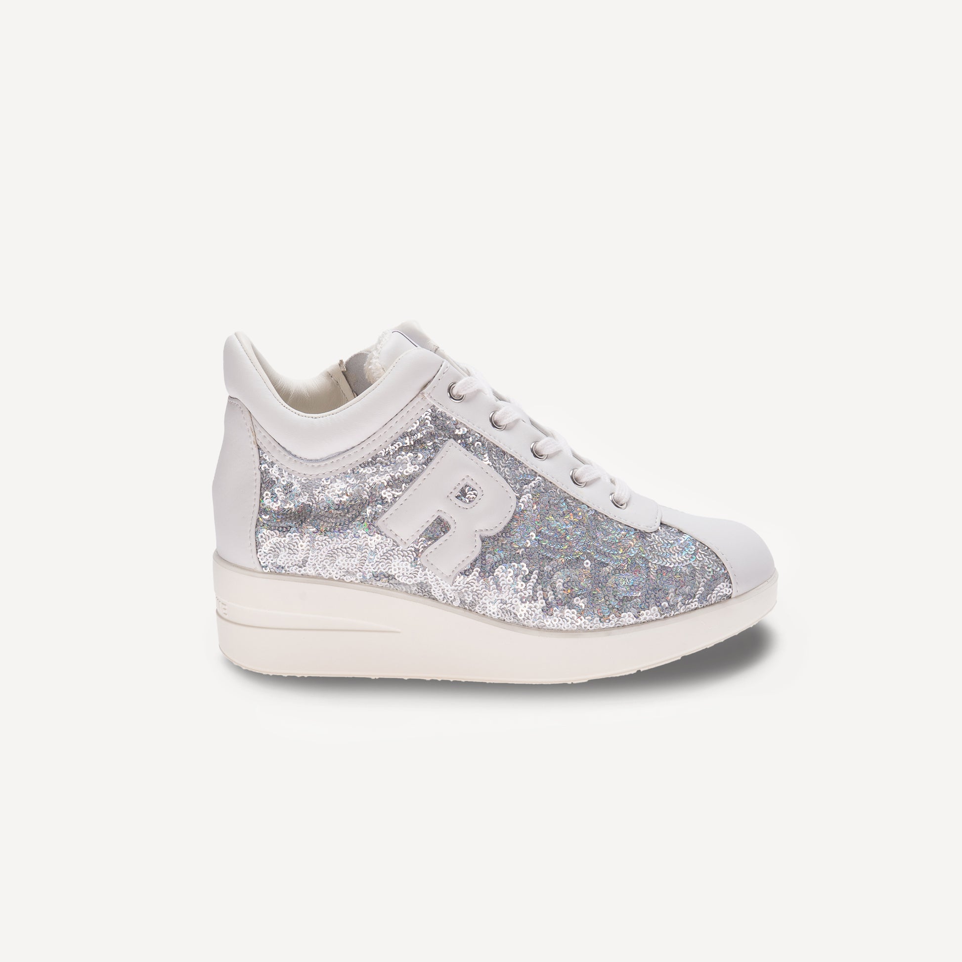 LACE-UP SNEAKERS WITH INTERNAL ZIP, SEQUINED UPPER WITH LEATHER INSERTS, POLYURETHANE SOLE, HEIGHT 56MM