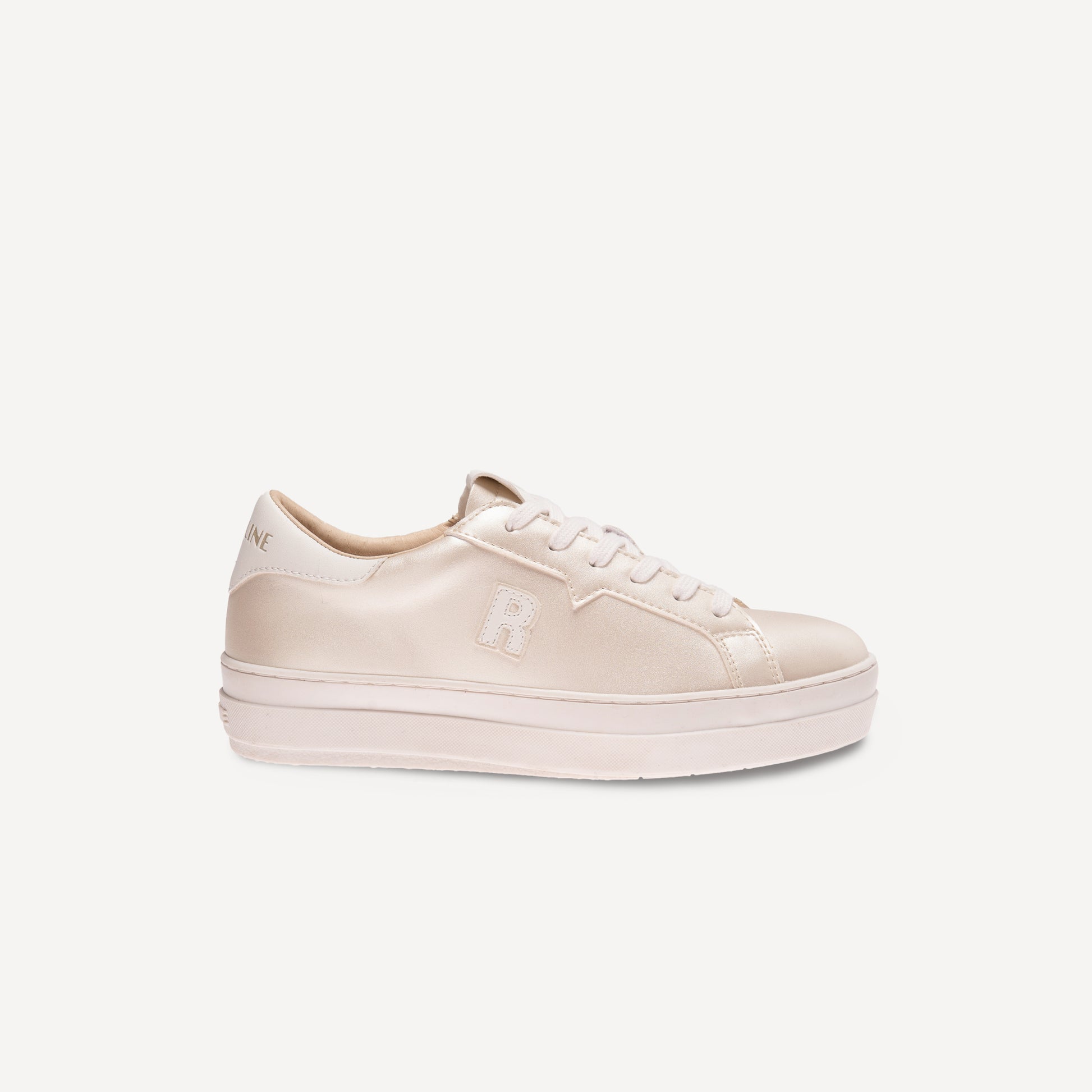 SNEAKERS STRINGATA CON TOMAIA IN MATERIALE SINTETICO CON RIPORTI IN TESSUTO GLITTERATO SUOLA CASSETTA IN GOMMA ALTEZZA 40MM